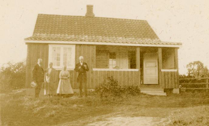 1920-tallet. Drengestua er bygd om og nå bor Amunda her. F.v. Johan og Kristine Regnell,